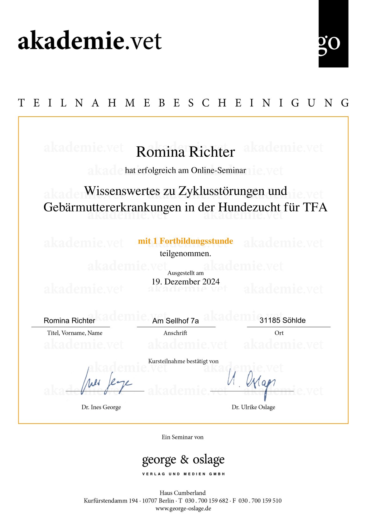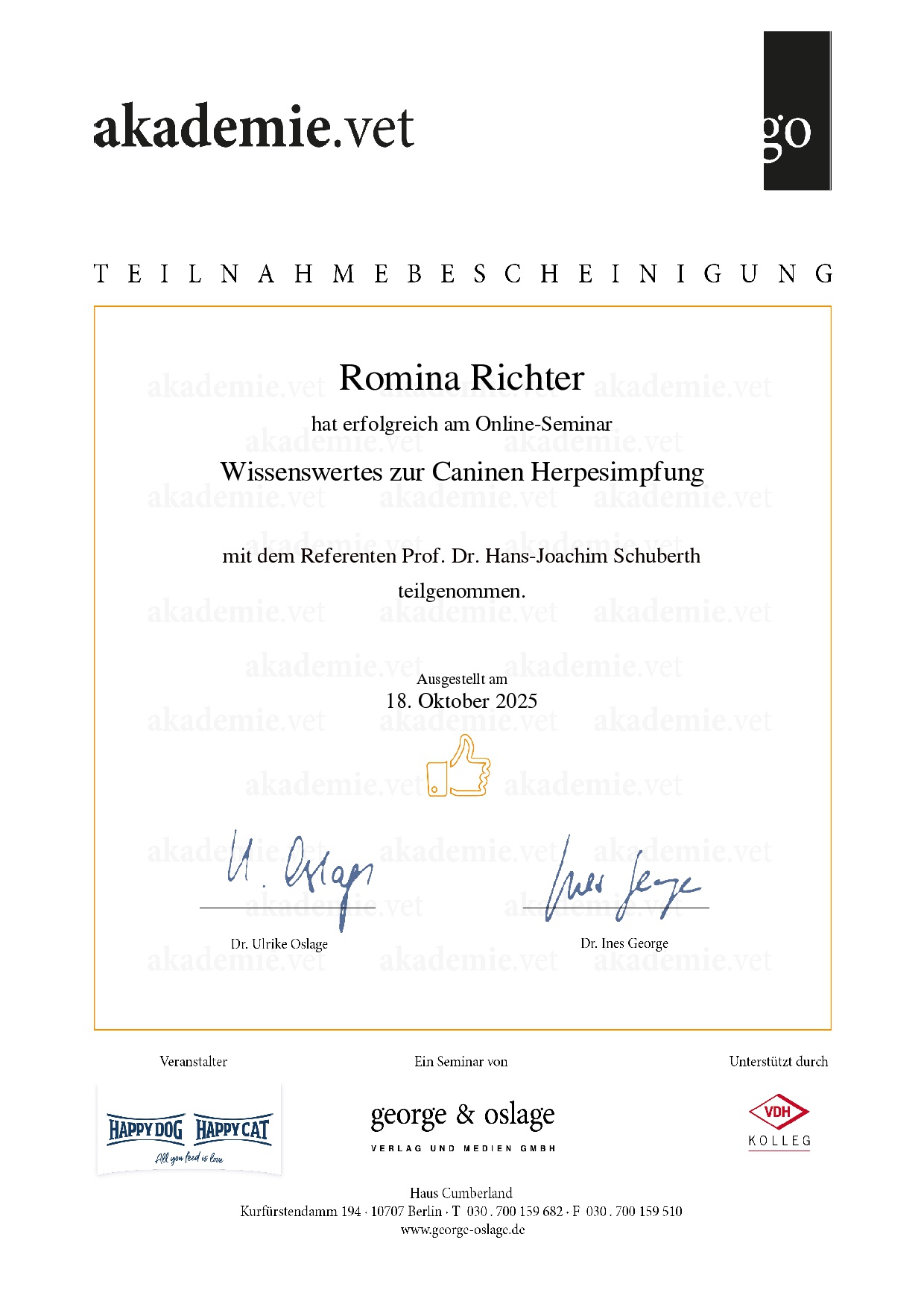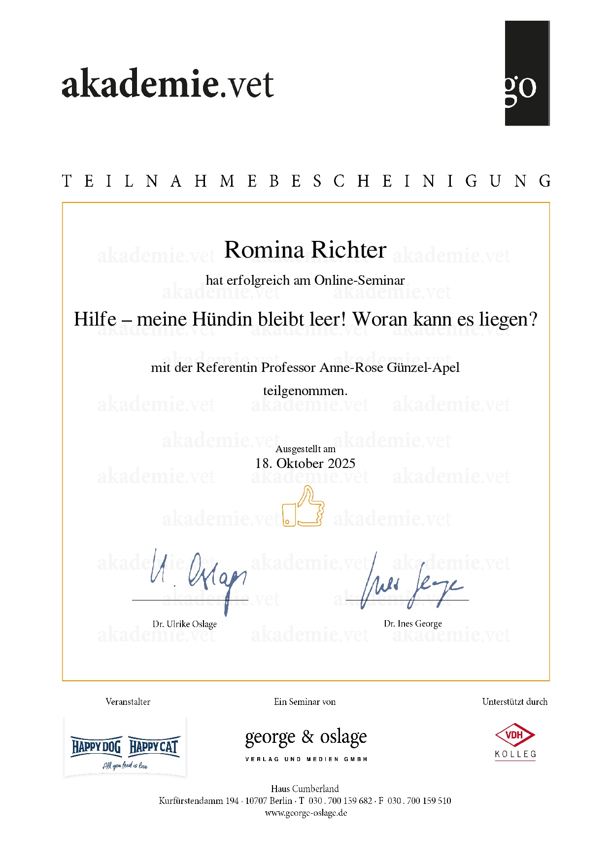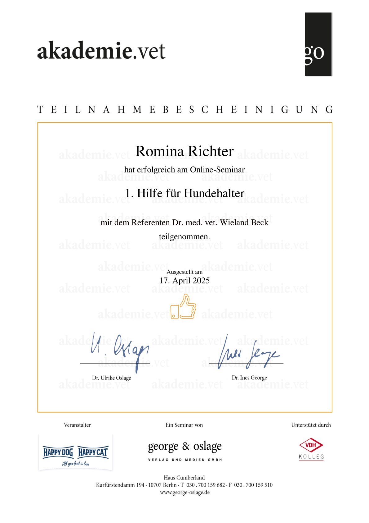 Zertifikate Eine kleine Übersicht über meine aktuellen Zertfizierungen: Hilfe! Die Hündin bleibt leer Wissenswertes zum Caninen Herpes Virus Gesunde Zuchttiere Alles, rund um die Geburt Welpen in den ersten Wochen – akademie.vet 1. Hilfe beim Hund – akademie.vet Grundkurs Zuchtpraxis – VDH Grundkurs Hundezucht – VDH Kynologischer Basiskurs – VDH Zyklusstörungen – akademie.vet 10. Züchtertag – Laboklin Vertragsrecht – Laboklin Geburt und Erstversorgung – Laboklin